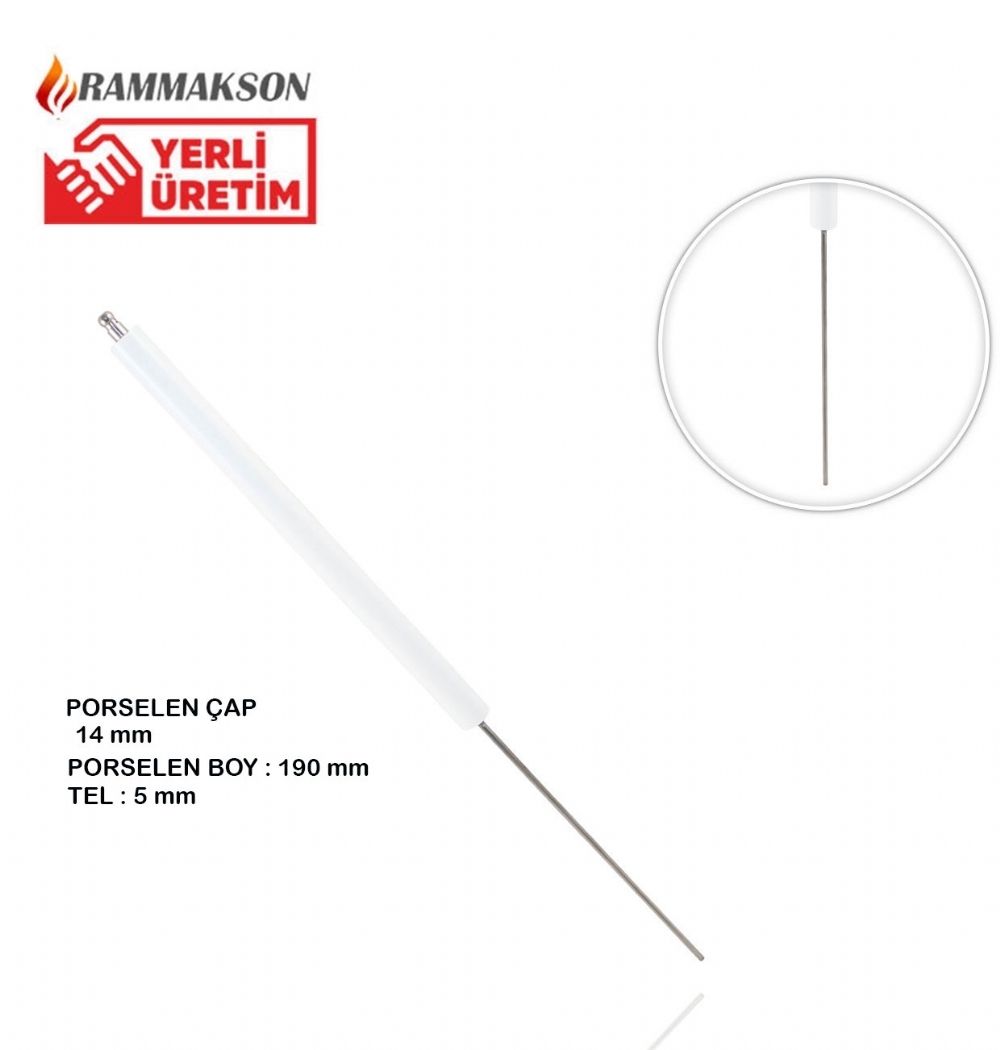 Rammakson markalı olarak üretilen Maxon 14x200mm rakorsuz gaz iyon elektrodu, çoğunlukla brülör sistemlerde kullanılmaktadır. Yerli üretim olan ürünün sahip olduğu porselen çapı 14 mm’dir. 5 mm tele sahip olan ürün, 190 mm porselen uzunluğa sahiptir.